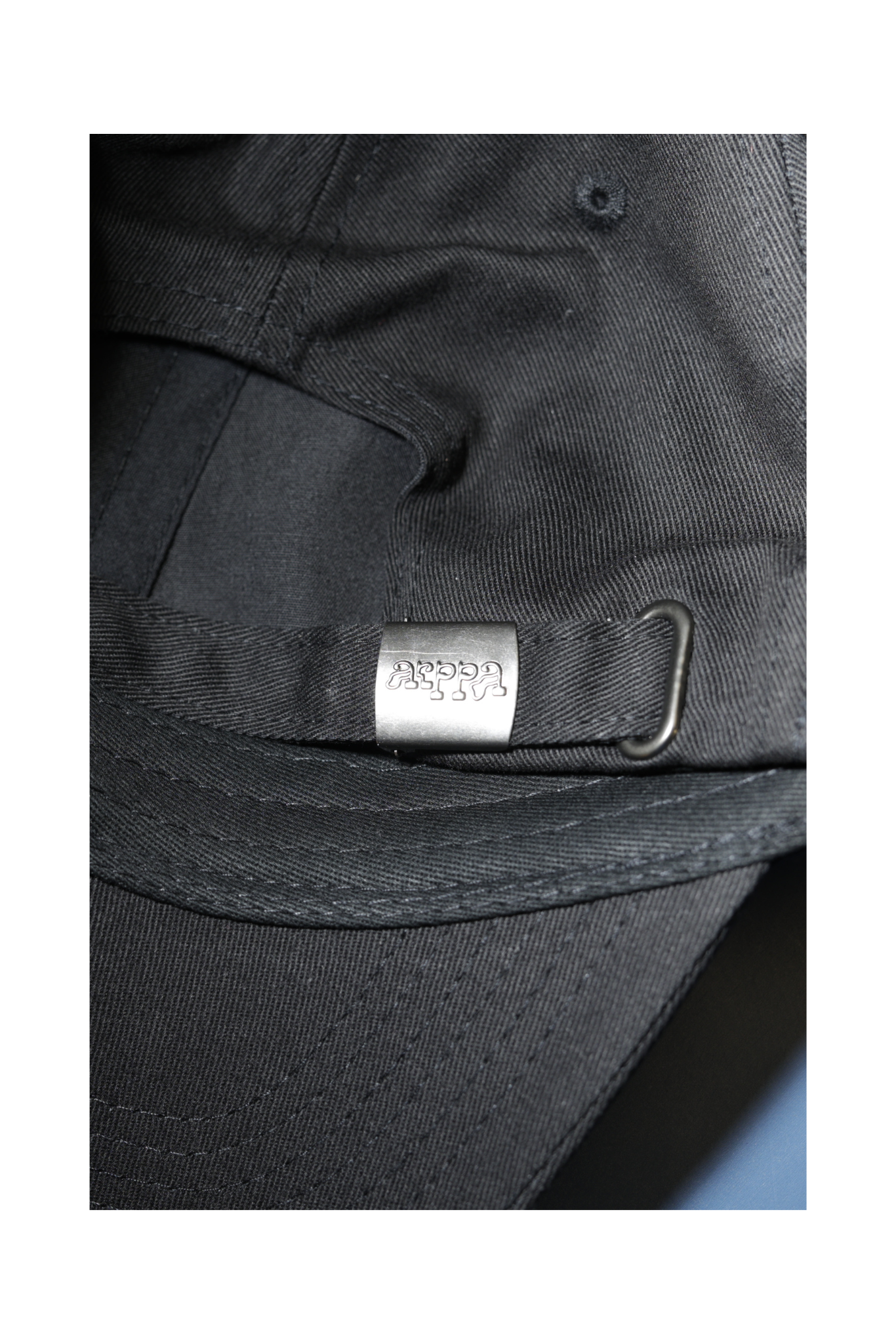 Musta lippis, jossa on edessä broderattuna keltaisella Arppa -logo. 6-paneelisessa one size lippiksessä on takana säätöhihna koon säätämistä varten. Takana metallisolki, jossa Arppa -logo.