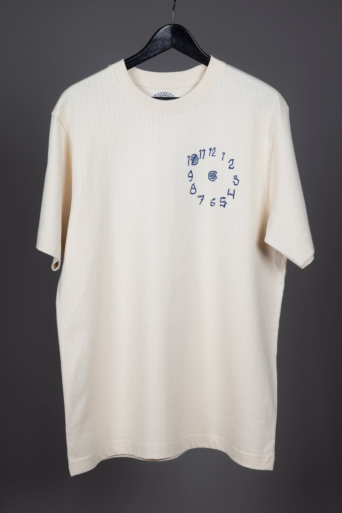 Luonnonvalkoinen t-paita, jossa tummansininen printti. T-paidan materiaali on 100% puuvillaa. Öko-Tex-standardi 100, GOTS-sertifikaatti ja PETA-Approved Vegan -sertifikaatti.