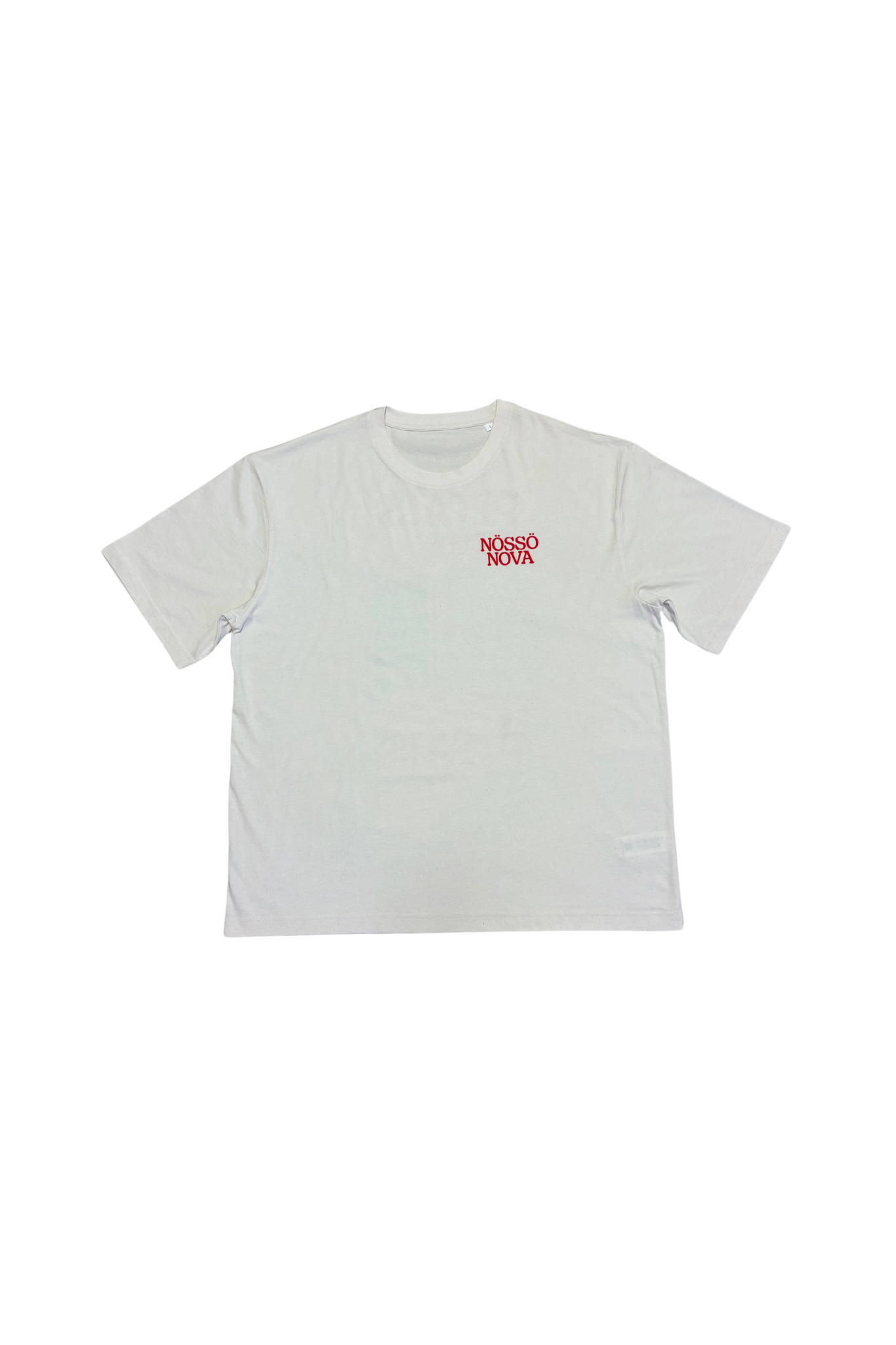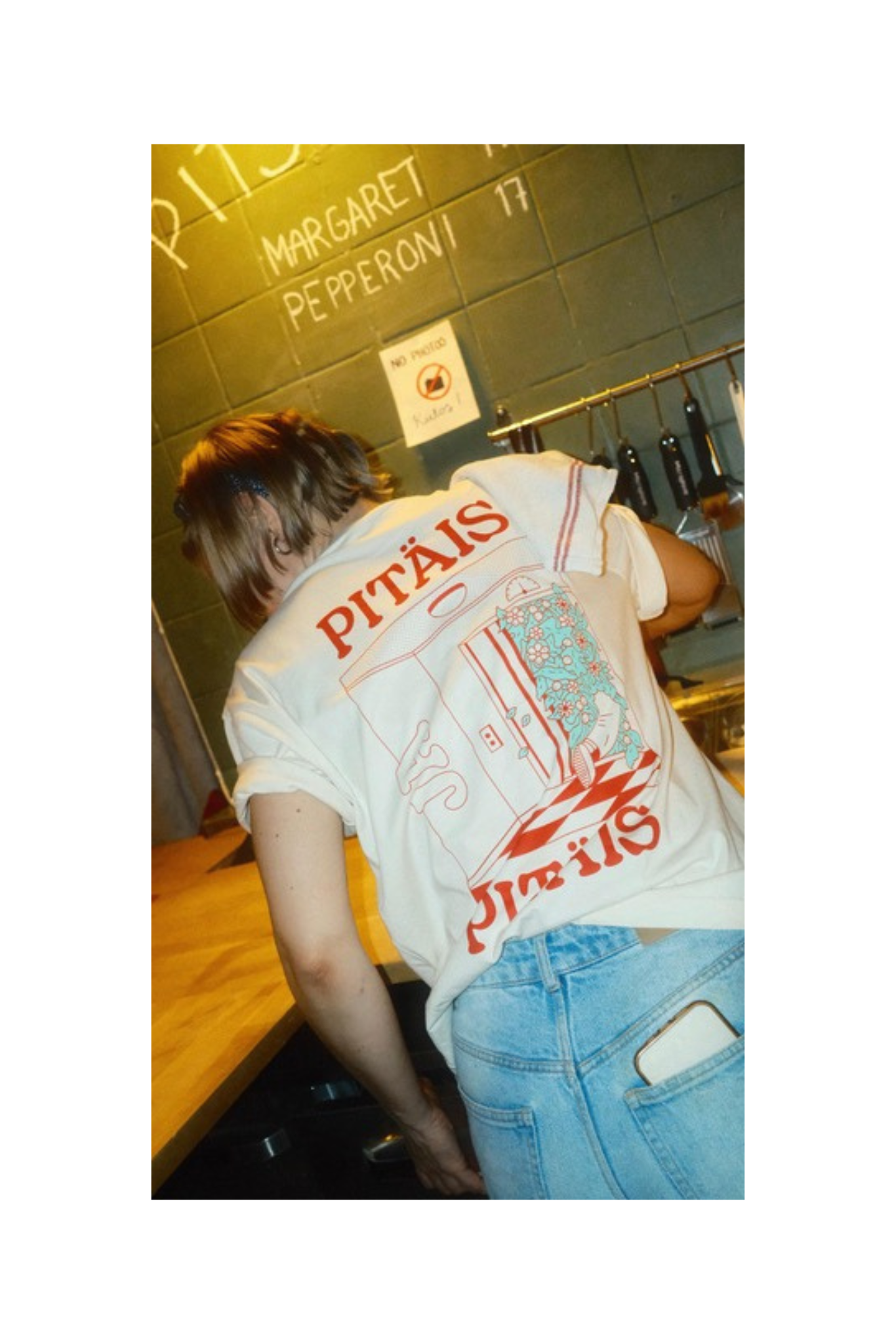 Vaalea Relaxed fit t-paita, jonka eteen on painettu Nössö Nova -logo ja taakse Olli Korpelan suunnittelema Pitäis ja pitäis -printti. Stanley / Stella Breezer t-paidan materiaali on 100% rengaskehrättyä ja kammattua luomupuuvillaa ja sen paksuus on 155 g/m².