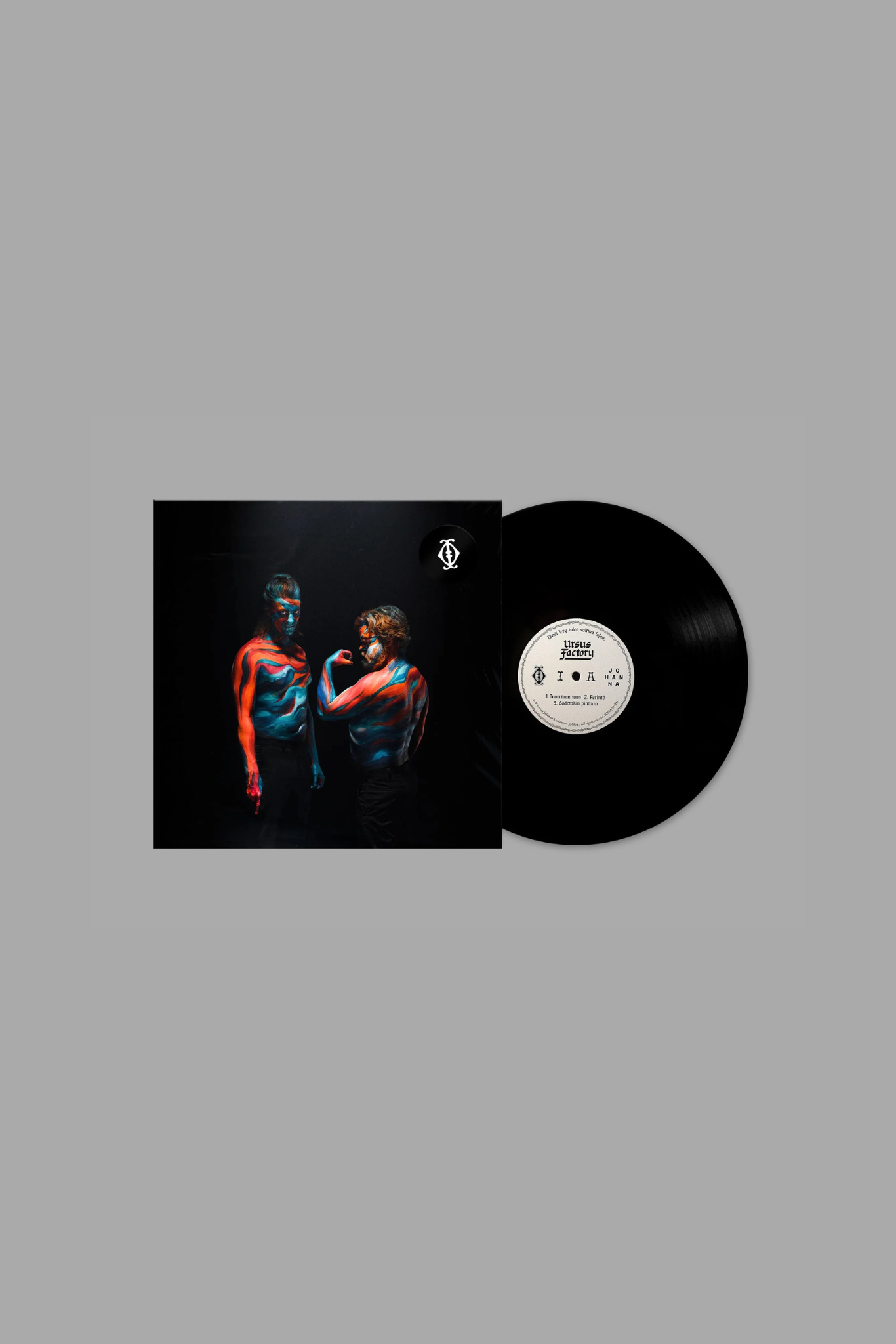 Ursus Factory's IO - 2LP released in 2023. Also available for a limited time with Allu and Jussi's autographs only in the online store! The album's cover art, product photos and IO merch are by graphic designer Eemil Mäntynen.