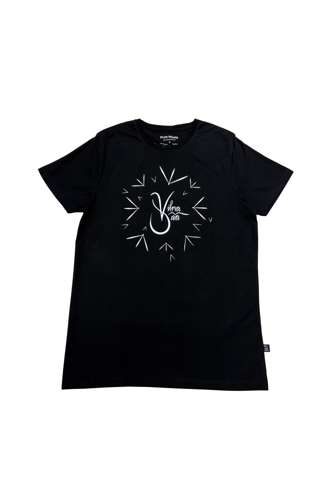 Pure Waste t-paita on valmistettu kierrätyspuuvillasta ja kierrätetyistä muovipulloista. Pure Waste t-paita on suunniteltu kestämään aikaa, siinä on suora malli ja pitkä mitoitus. Painamattoman t-paidan hiilijalanjälki 1,1 kg, vesijalanjälki 1,2 l & vedensäästö 1 425l.